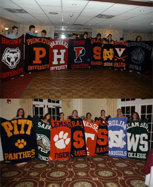 Our fleece throws are made from the highest quality polar fleece fabric from Malden Mills. This is the softest, most durable fleece we have found and it never pills. These 54" x 60" throws boldly display, in your school colors, the name, logo and/or mascot of the college, fraternity or sorority. When custom ordering these blankets, please communicate directly with Betsy via email or phone. This is a truly unique, one-of-a-kind gift! Cost starts at $185. Personalization is additional.