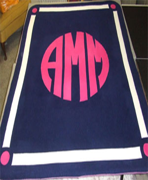 Our fleece throws are made from the highest quality polar fleece fabric from Malden Mills. This is the softest, most durable fleece we have found and it never pills. These 54" x 60" throws boldly display your special occasion request. When custom ordering these blankets, please communicate directly with Betsy via email or phone. This is a truly unique, one-of-a-kind gift! Costs vary according to design.